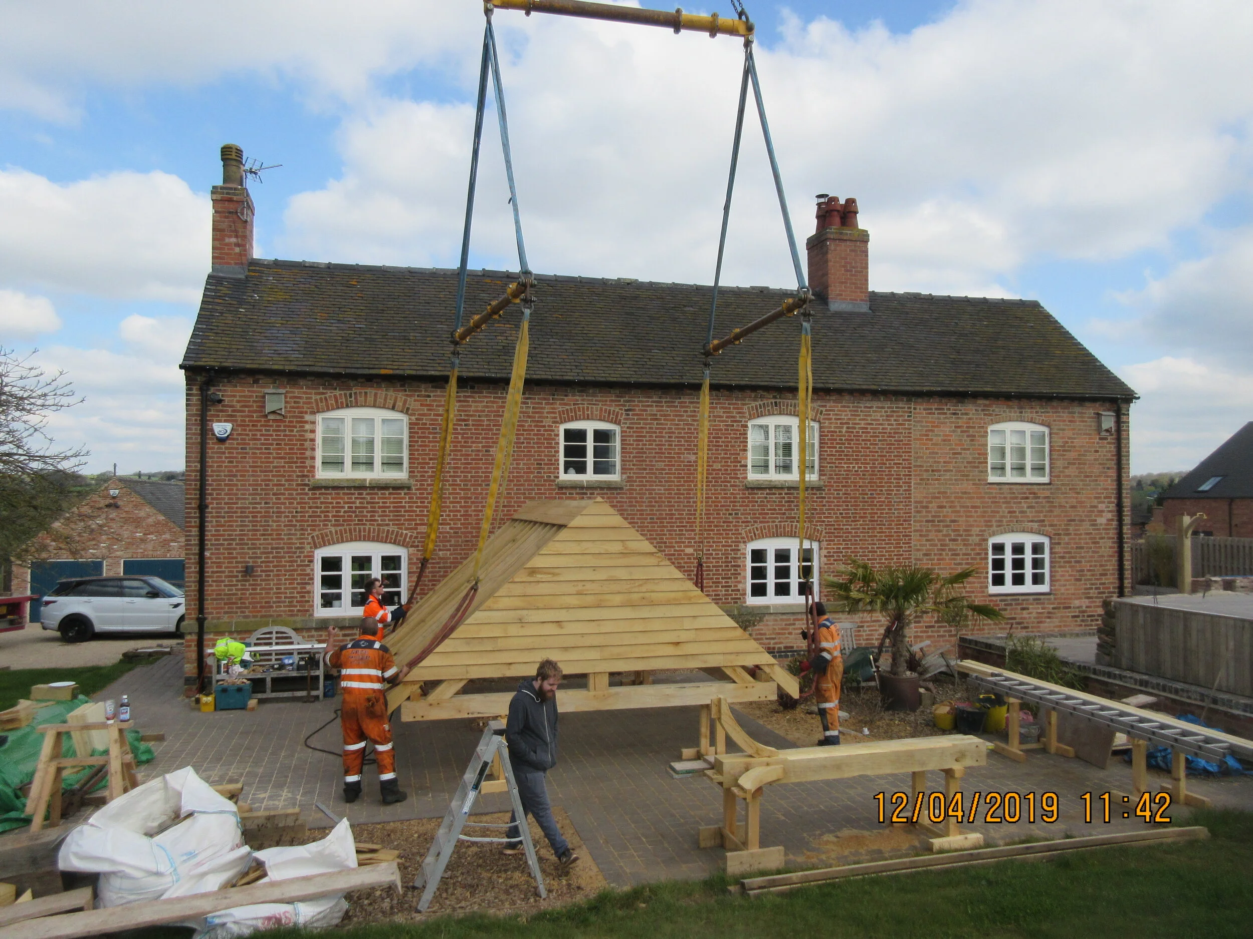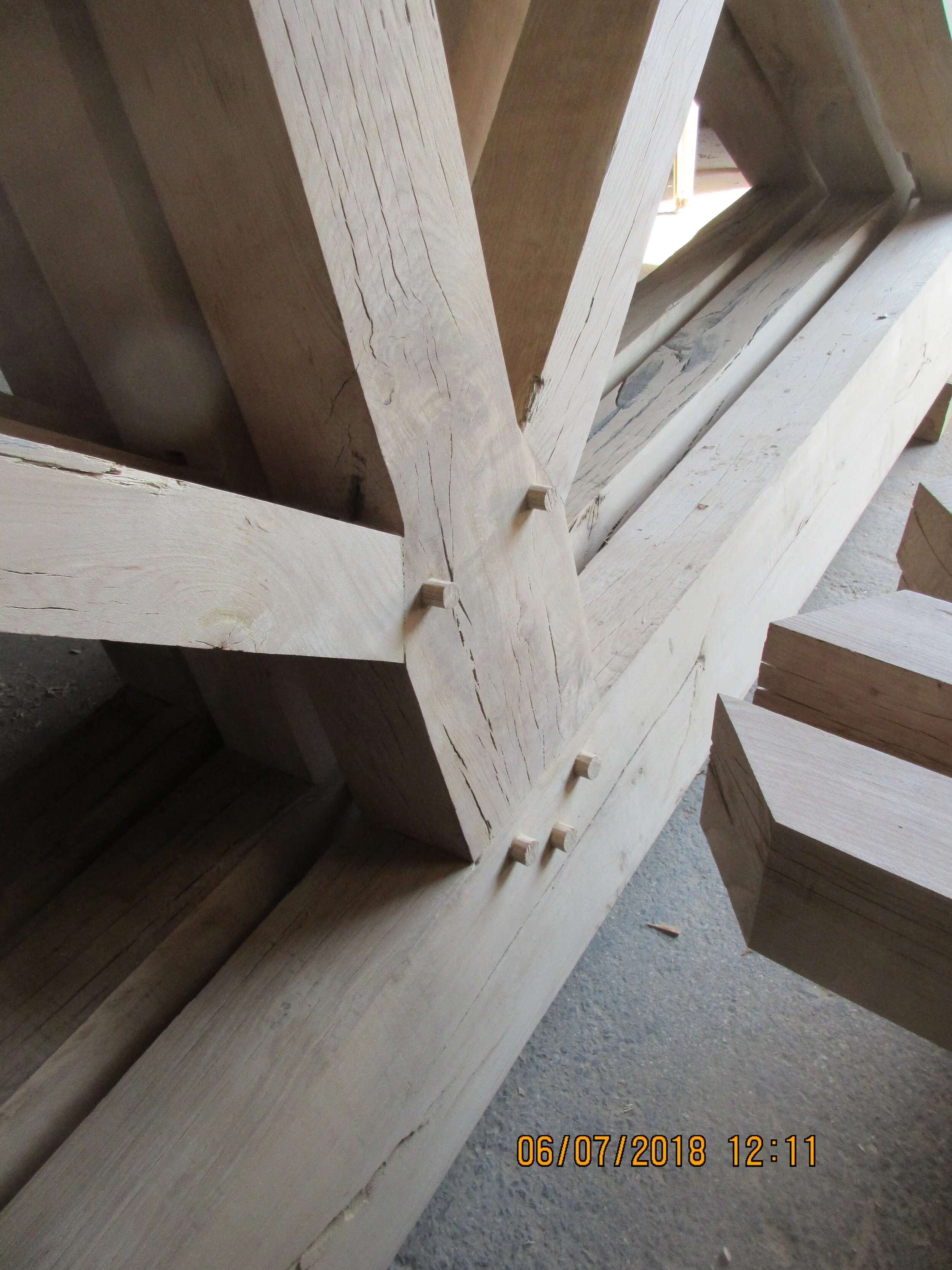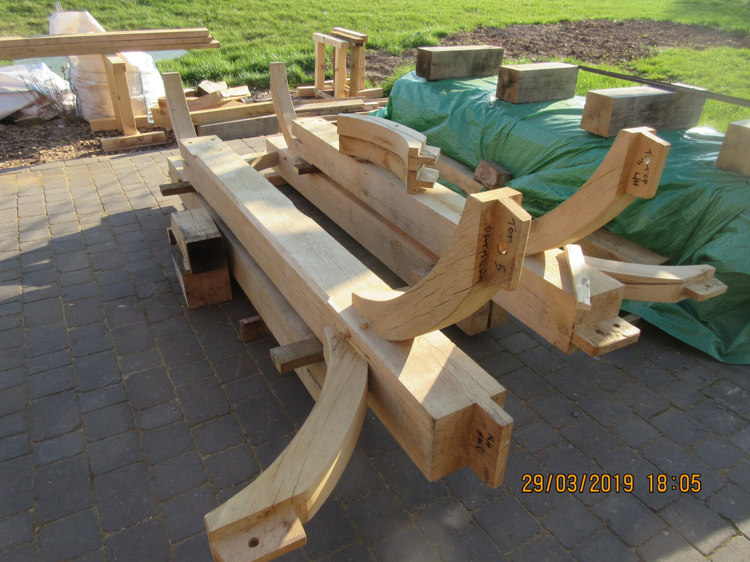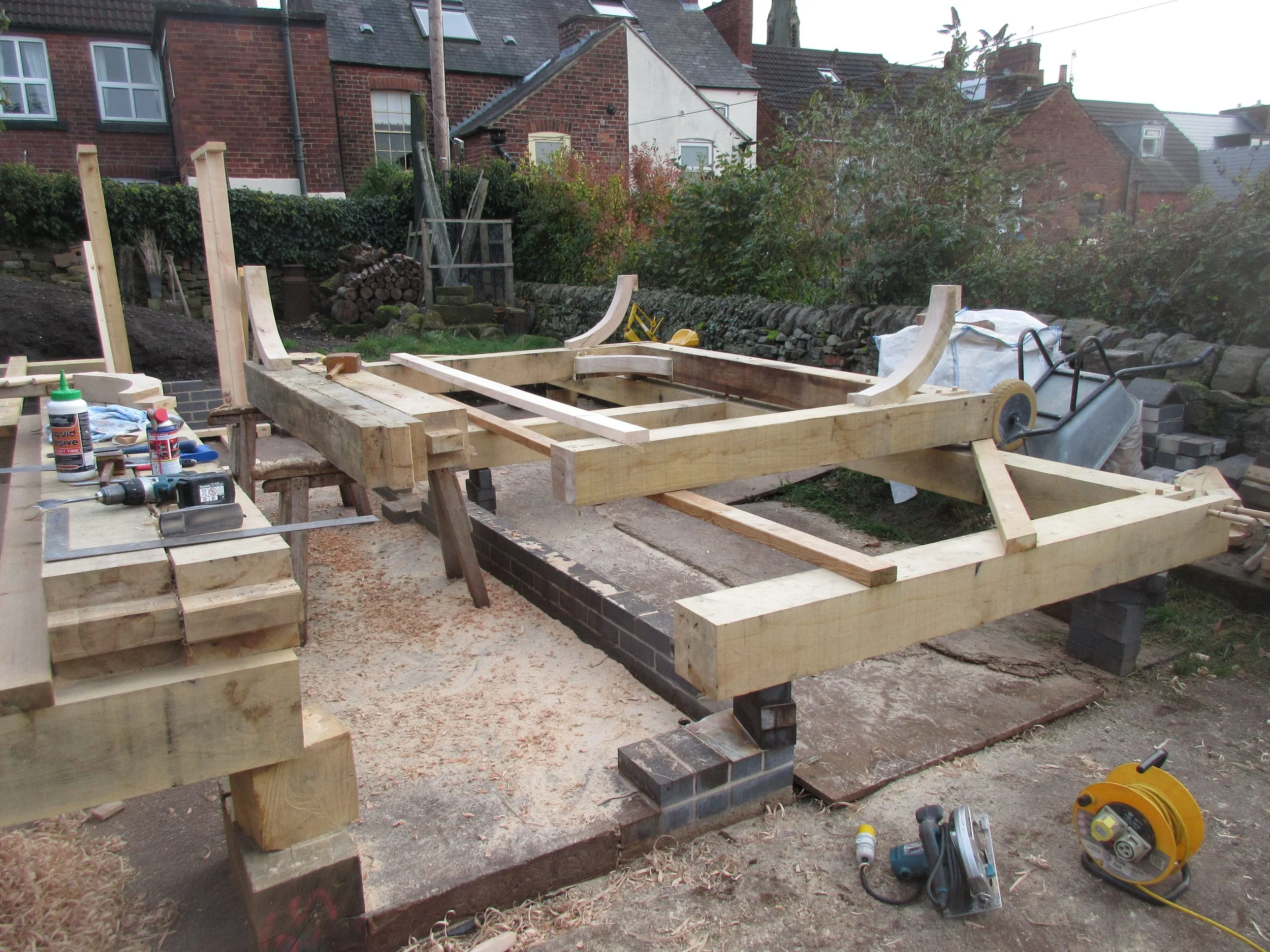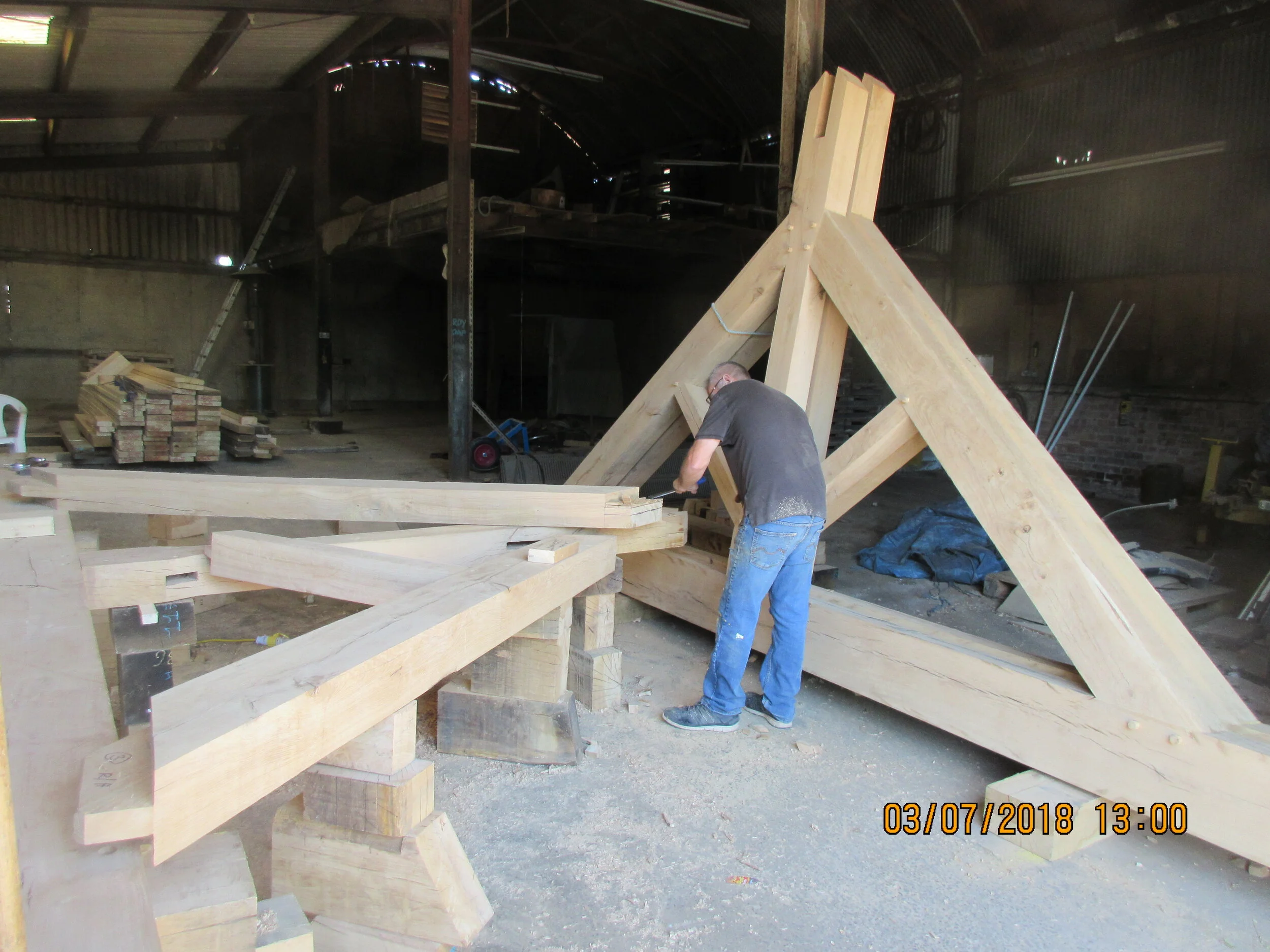 We specialise in building timber-framed structures, including king post roofs, outdoor kitchens, stable blocks and pergolas. All are constructed using air-dried oak, with morticed & tenoned joints, drawbored and pegged for longevity and stability.